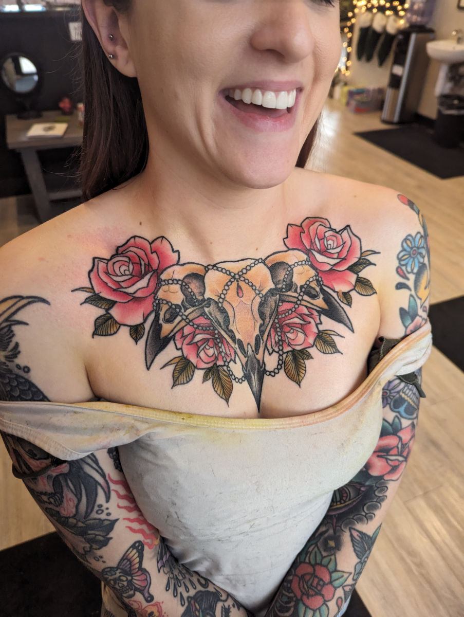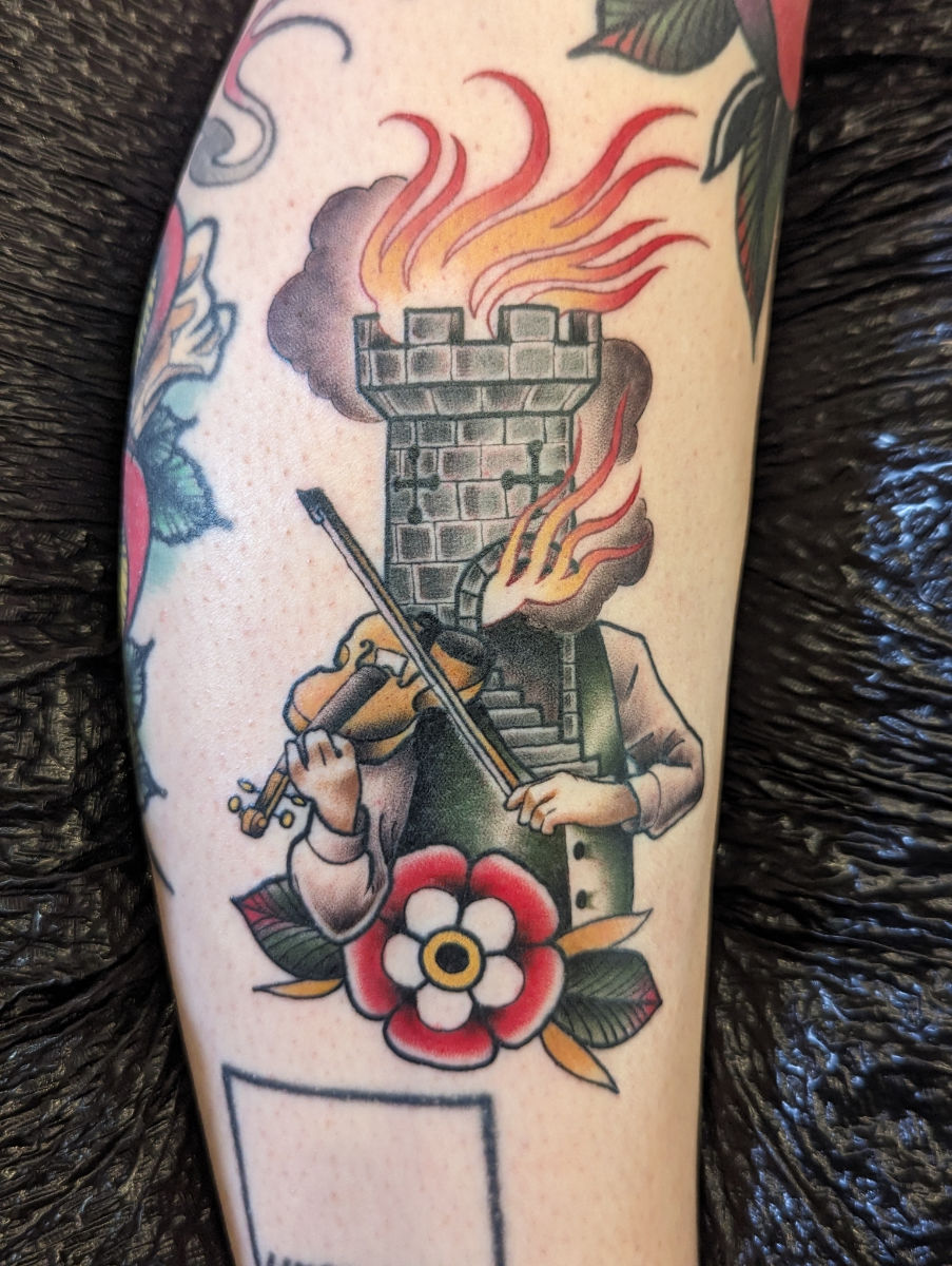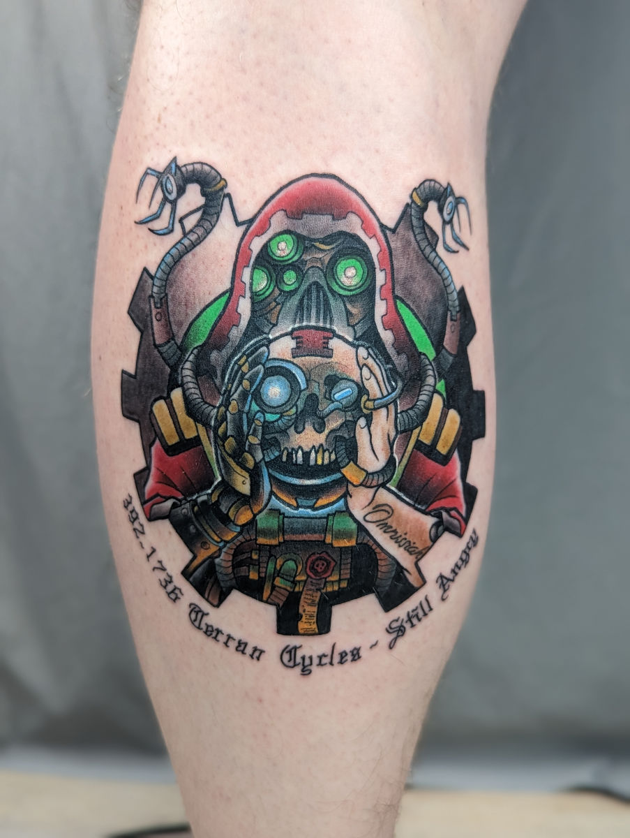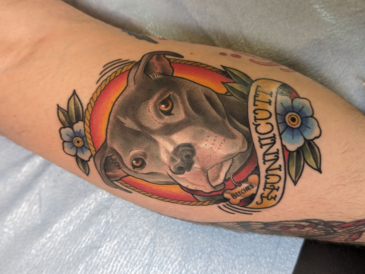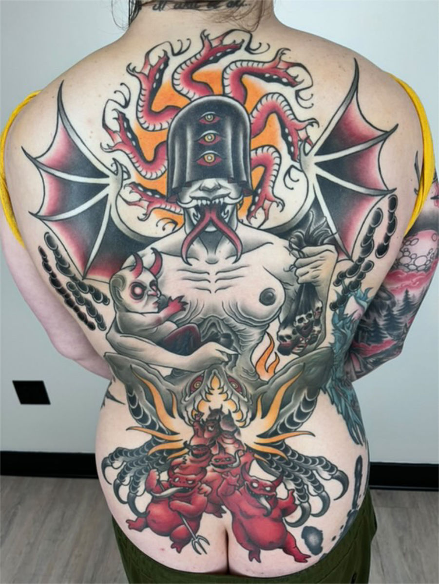 He spent most of his youth drawing comic books which resulted in a brief stint at Kendall where he decided art school was bullshit so he fucked off accordingly. The result was a strong illustration background which he applied to traditional/neotraditional tattooing.