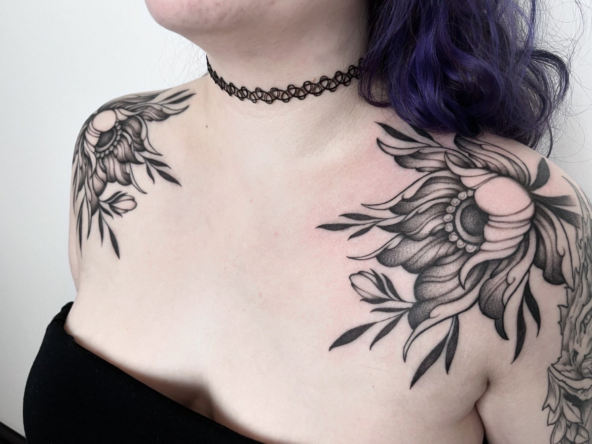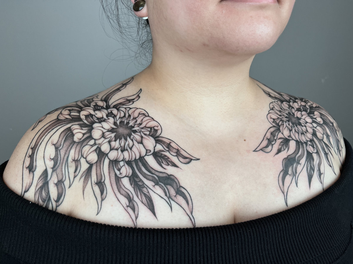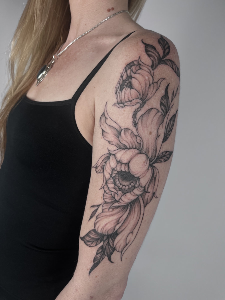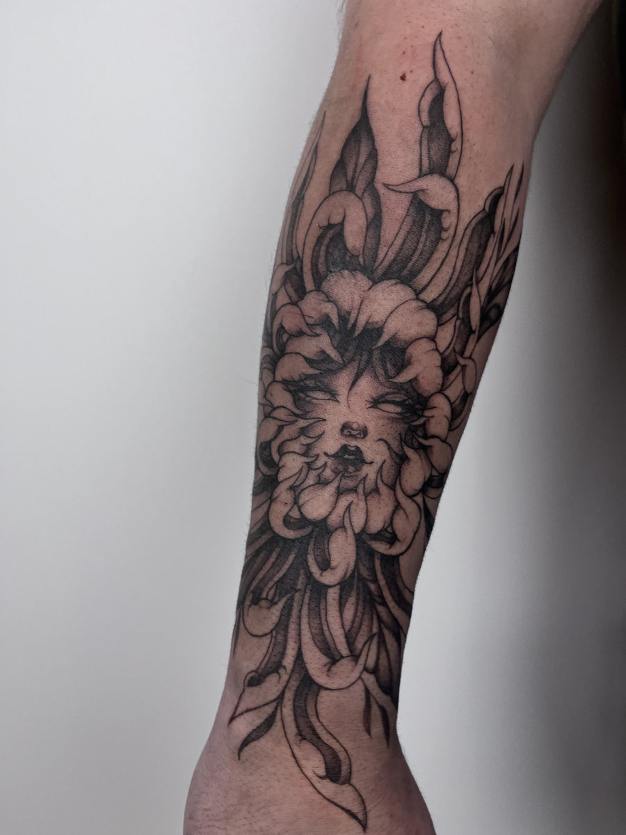 Originally from West Michigan, Sera Alana is a known for her surreal illustrative blackwork and flowing florals. Completing her apprenticeship in Northern California in 2022, Sera moved back to the Midwest in 2023 to share her unique illustrative style and started working at Greenlion Studios in June of 2024. She is approaching her seventh year of tattooing and strives to expand her skills and knowledge of tattooing everyday.